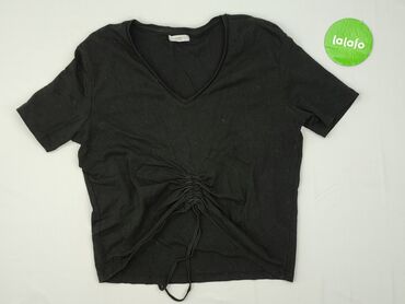 Czarna koszulka damska BELVED Woman - Klasyczny T-shirt z krótkim rękawem - Dekolt w kształcie litery V - Rozmiar: S (z metki) - Materiał: 95% bawełna, 5% elastan – miękka, elastyczna dzianina zap...