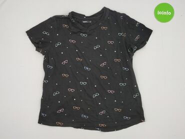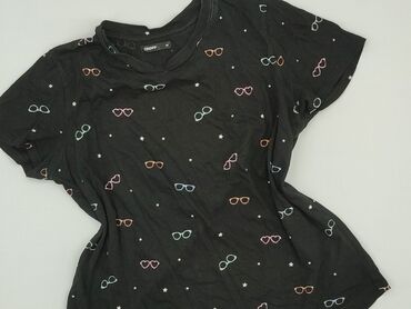 T-shirt damski CROPP – rozmiar S - Kolor: czarny, całość w drobny, gwiezdny wzór (białe kropki i gwiazdy). - Nadruk z przodu: półksiężyc ozdobiony różowymi kwiatami, otoczony promieniami słońca – ...