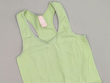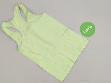 Top damski bez rękawów – limonkowy - Krój: luźny, z obniżoną linią ramion i krótkimi skrzydełkowymi rękawkami - Dekolt: okrągły - Dół: lekko ściągnięty plisą - Materiał: gładka, lekko połyskująca ...Stan: