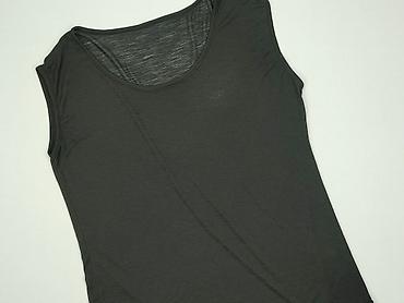 Czarna damska bluzka bez rękawów - Krój: luźny, warstwowy przód z asymetrycznymi panelami; okrągły dekolt - Długość: do bioder - Materiał: cienka, gładka tkanina o lejącym chwycie (miękka, niegnio...Kolor: