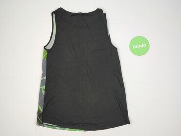 Top damski bez rękawów z tropikalnym nadrukiem - Krój: krótki, prosty, bez rękawów, okrągły dekolt - Wzór: liście w odcieniach zieleni, turkusu, granatu i musztardy; intensywny, wielokolorowy prin...