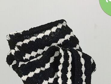 - Wzór: czarno‑białe, poziome pasy o fakturowanym, pętelkowym splocie