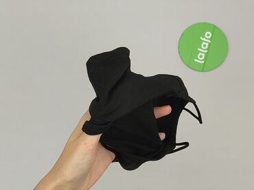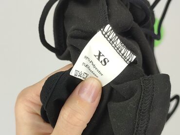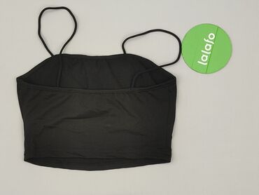 Czarny top typu bandeau z cienkimi ramiączkami spaghetti. - Fason: krótki, dopasowany, bez dekoltu, prosta linia góry i dołu. - Materiał: 100% poliester; elastyczna, drobno Marszczona/żakardowa...