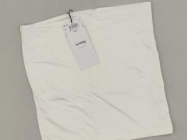 Top typu bandeau Sinsay - Model: biały, gładki, bez ramiączek (bandeau/tube top); po bokach wszyte cienkie gumki pomagające dopasować top do sylwetki. - Rozmiar: L (na metce). - Skład materiału: 9...