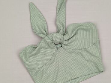 Top/bandeau SHEIN - Model: bandeau z marszczeniem na środku i po bokach - Kolor: limonkowy/oliwkowy z drobnym prążkowaniem - Krój: bez fiszbin, z długimi, cienkimi sznureczkami do wiązania na plec...