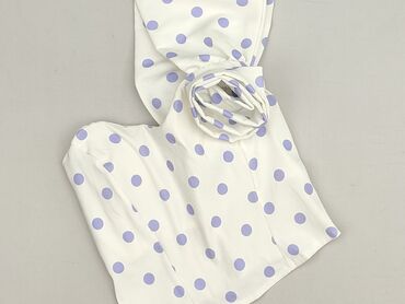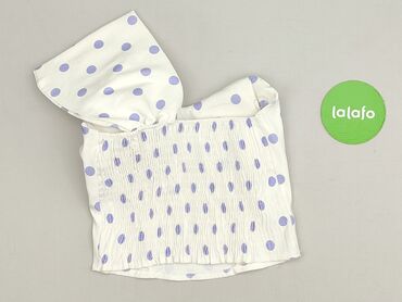 Czarna krótka bluzka w białe kropki dla kobiet. - Krój: krótki top z głębokim dekoltem w kształcie serka/kwadratu, wiązanie na środku biustu. - Rękawy: krótkie, bufiaste, wykończone elastyczną gum...