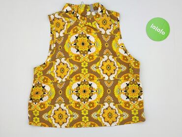 Top damski bez rękawów z lekkiego, półprzezroczystego materiału. Wzór: okręgi w odcieniach granatu, niebieskiego, bieli i złamanej żółci na drobno nakrapianym tle. Krój luźny, przewiewny, idealny n...