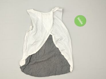 Top damski bez rękawów z lekkiego, półprzezroczystego materiału. Wzór: okręgi w odcieniach granatu, niebieskiego, bieli i złamanej żółci na drobno nakrapianym tle. Krój luźny, przewiewny, idealny n...