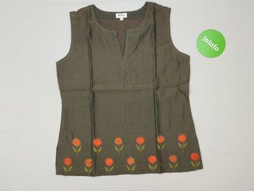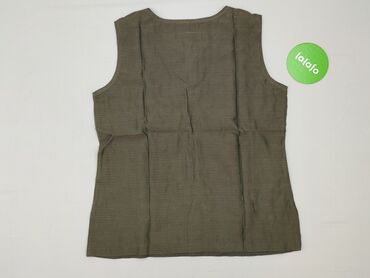 Top damski bez rękawów BELoVED Woman, rozmiar L. - Kolor: oliwkowa zieleń - Wzór: kremowe liście na całej powierzchni - Krój: luźny, lekko rozszerzany ku dołowi - Dekolt: okrągły z ozdobnym wycięci...