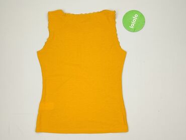 Top bez rękawów House Basic - Marka: House Basic - Rozmiar: XS - Krój: dopasowany, bez rękawów - Dekolt: okrągły, z delikatnie falowanym wykończeniem przy dekolcie i pachach - Kolor: intensywny żó...Stan: