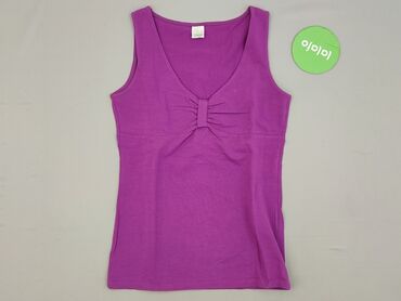 Top na ramiączkach Esmara, damski - Kolor: jasny róż (pastelowy) - Materiał: prążkowana dzianina, miękka i elastyczna; skład z metki: 95% bawełna, 5% elastan - Rozmiar z metki: M (EU 40/42) - Krój...Fioletowy top damski marki Camaieu. Charakteryzuje się dekoltem w kształcie litery V oraz ozdobnym marszczeniem z przodu, dodającym elegancji. Wykonany z miękkiego materiału, zapewniającego komfort noszenia, idealny na co dzień. Sprawdzi się jako element letniej garderoby lub baza pod inne stylizacje.