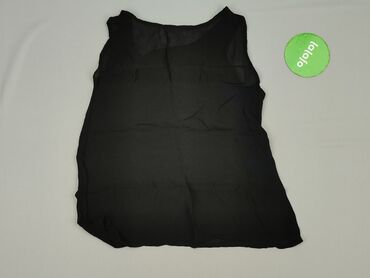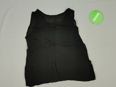 Czarna damska bluzka bez rękawów - Fason: dopasowany, z krótką zakładką/cięciem przy dekolcie z przodu - Dekolt: okrągły - Rękawy: cap sleeves (lekko zachodzące na ramiona) - Długość: do bioder - ...