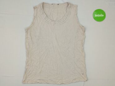 Bez rękawówTen damski top bez rękawów w odcieniu beżu to uniwersalny element garderoby. Prosty krój i okrągły dekolt sprawiają, że jest to praktyczny wybór na wiele okazji. Może służyć jako baza do warstwowych stylizacji lub być noszony samodzielnie w cieplejsze dni.