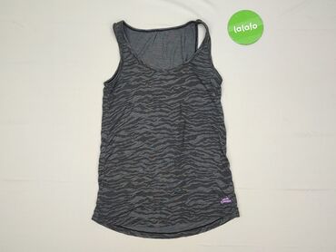 Bez rękawówTen damski top bez rękawów w odcieniach szarości charakteryzuje się unikalnym wzorem inspirowanym paskami zebry, który dodaje mu nowoczesnego i dynamicznego wyglądu. Wykonany z lekkiego materiału, zapewnia komfort i swobodę ruchów, co czyni go idealnym wyborem na ciepłe dni lub jako element stroju sportowego. Okrągły dekolt i standardowy krój sprawiają, że top jest uniwersalny i łatwo dopasowuje się do różnych stylizacji, od casualowych po bardziej aktywne. Jest to praktyczny dodatek do każdej garderoby, pasujący zarówno do spodenek, legginsów, jak i jeansów.Doskonały na lato, do ćwiczeń, codziennego noszenia, lub jako baza pod inne ubrania.Stan oceniono jako dobry, co świadczy o jego zadbanym wyglądzie i gotowości do dalszego użytkowania.Cechy: