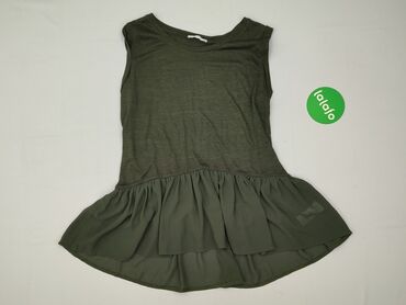 Bez rękawówDamski top Reserved w kolorze khaki, idealny na co dzień. Charakteryzuje się okrągłym dekoltem i brakiem rękawów, co zapewnia wygodę i swobodę ruchów. Dolna część topu posiada efektowne marszczenie i falbankę, dodając mu lekkości. Wykonany w 100% z poliestru, co gwarantuje łatwość w pielęgnacji i trwałość materiału. Jest to uniwersalna opcja do wielu stylizacji.