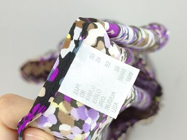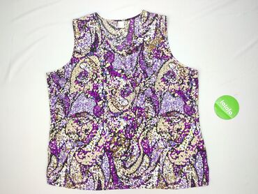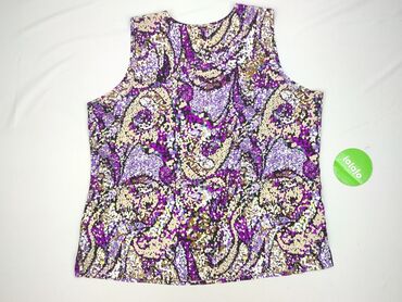 Krótki rękawTop damski w fioletowo-beżowo-czarny wzór, idealny na co dzień. Posiada okrągły dekolt i jest bez rękawów, co zapewnia swobodę ruchów. Jego wzorzysta tkanina w plamki i esy-floresy nadaje mu unikalny charakter. Może być noszony zarówno samodzielnie, jak i jako baza pod narzutkę czy marynarkę.