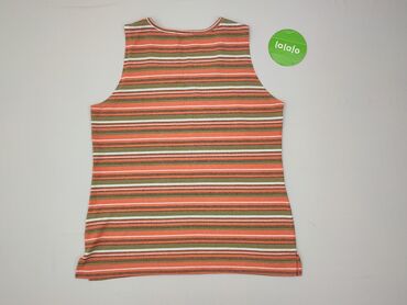 Damska koszulka bez rękawów (top) - Rozmiar: M (metka widoczna) - Krój: luźny, zaokrąglony dół, dekolt kwadratowy z delikatnymi zakładkami z przodu - Wzór: szerokie, poziome pasy w kolorach brzosk...