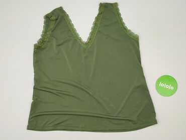 Zielona bluzka damska z koronką - Krój: bez rękawów, dekolt V z dekoracyjną koronką; koronkowe wykończenie przy ramionach - Kolor: intensywna zieleń, koronka w jaśniejszym odcieniu - Materiał: 50%...