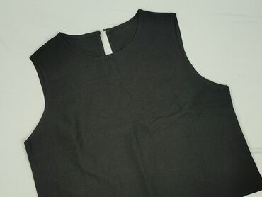 Czarny top bez rękawów z miękkim, lejącym dekoltem typu woda. - Krój: dopasowany, długość do bioder, bez zapięć - Dekolt: drapowany (woda), delikatnie opadający - Materiał z metki: 80% poliester, ...