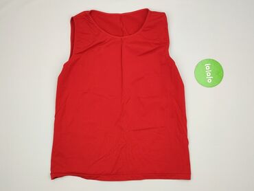 Czerwona koszulka damska bez rękawów - Krój: dopasowany, lekko taliowany - Dekolt: okrągły z ozdobnym sznurowaniem z przodu - Rękaw: krótki/cap sleeve - Materiał: 100% poliester (metka) - Rozmiar ...Stan: