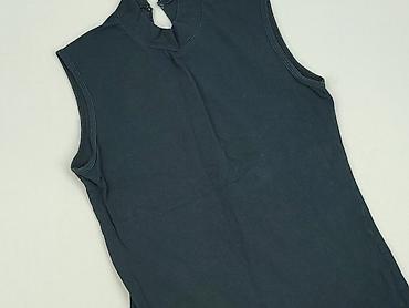 Granatowa damska koszulka bez rękawów (top) - Fason: prosty, bez rękawów, okrągły dekolt - Materiał: elastyczna, prążkowana dzianina (miękka i dopasowująca się) - Kolor: ciemny granat - Detale: pi...