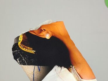 - Dodatki: drobne ozdobne dżety przy brzegu kapelusza na grafice.