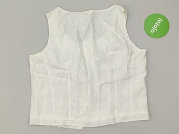 Bluzka bez rękawów Esmara – biała, z koronkową górą - Krój: luźny top bez rękawów - Dekolt: okrągły, wykończony dekoracyjną lamówką z kuleczkami - Zapięcie: pętelka z guziczkiem z tyłu szyi - Deta...