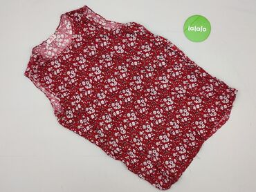 Bluzka damska bez rękawów w kwiaty - Krój: luźny, lekko wydłużony, zaokrąglony dół - Dekolt: klasyczny, okrągły - Wzór: intensywny, wielobarwny print kwiatowy na jasnym tle (czerwienie, zielenie, ...