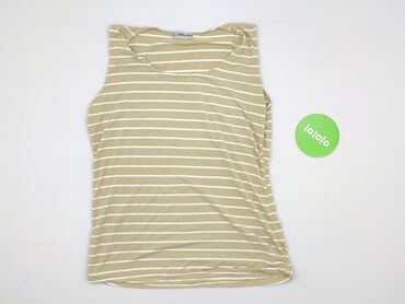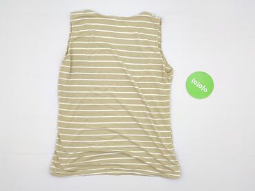 Beżowa bluzka bez rękawów – prążkowana - Krój: prosty, bez rękawów, okrągły dekolt - Rozmiar z metki: XL - Kolor: jasny beż/krem - Wzór i faktura: pionowe prążki (żakardowe), materiał elastyczny i...