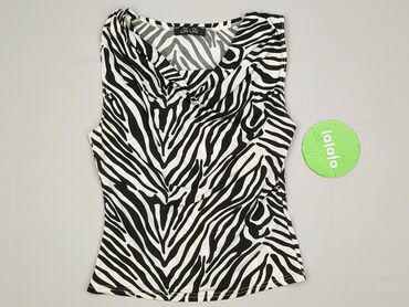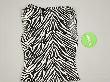 Top damski bez rękawów w zebrowy wzór - Krój: krótki top/cropped, bez rękawów, okrągły dekolt - Wzór: czarno‑srebrne/siwe pasy zebra, efekt delikatnego połysku i fakturowanej tkaniny - Materiał: 1...Stan: