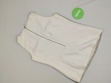 Srebrny top bez rękawów „Spring is here” - Fason: koszulka bez rękawów, okrągły dekolt, lekko wydłużony tył - Kolor i wykończenie: metaliczny srebrny, połyskująca dzianina - Przód: panel z cekinam...