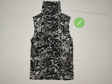 Damski bezrękawnik/top z golfem - Kolor: ciemnobrązowy/czarny (gładki) - Krój: bez rękawów, dopasowany, długość do bioder - Kołnierz: miękki półgolf ze wzorem w odcieniach beżu, czerni i brązu (mot...Stan: