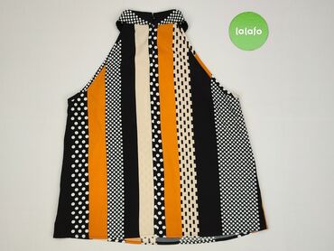 Bez rękawówKolorowy top damski bez rękawów, o fasonie halterneck, w paski i kropki, to idealny wybór na cieplejsze dni. Dominujące kolory to pomarańczowy, czarny i beżowy, uzupełnione klasycznymi białymi kropkami i czarnymi kropkami na białym tle. Dekolt typu halterneck jest wiązany, co pozwala na dopasowanie i dodaje elegancji. Materiał jest lekki i przewiewny, zapewniając komfort noszenia. Długość jest standardowa, a krój luźny, zapewniający swobodę ruchów. Top świetnie sprawdzi się na co dzień, jak i na specjalne okazje, np. spotkanie ze znajomymi. Idealny do łączenia z dżinsami, szortami czy spódnicami, tworząc unikalne, modne stylizacje.