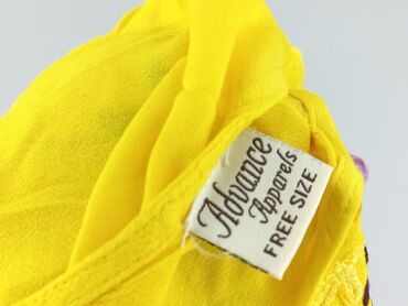 Damska koszulka bez rękawów w kolorze żółtym, ozdobiona barwnym motywem kwiatowym i owocowym. Idealna na ciepłe dni, wykonana z materiałów zapewniających komfort noszenia.Damski top bez rękawów w odcieniach żółci i fioletu z efektem tie-dye. Charakteryzuje się okrągłym dekoltem ozdobionym haftowanymi motywami kwiatowymi w odcieniach żółci i brązu. Wykonany z mieszanki bawełny i wiskozy, co zapewnia komfort noszenia. Idealny na letnie dni, pasujący do codziennych stylizacji.