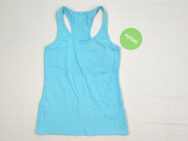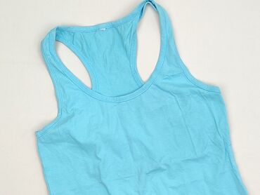 Niebieska koszulka bez rękawów (tank top) - Krój: klasyczny, dopasowany, głębszy dekolt i wycięte pachy - Materiał: lekka, miękka dzianina bawełniana z dodatkiem elastanu (na zdjęciach widać elast...