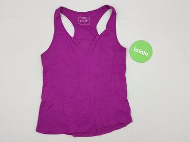 Fioletowa damska koszulka na ramiączkach (tank top) - Fason: bokserka z wycięciem typu racerback - Kolor: intensywny fiolet - Wzór: nadruk z cienkich, przecinających się linii na przodzie i tyle -...Stan:
