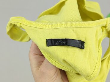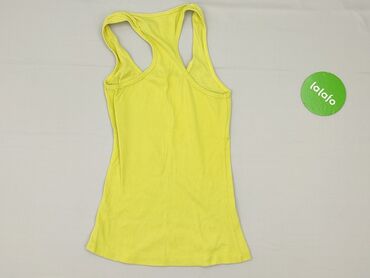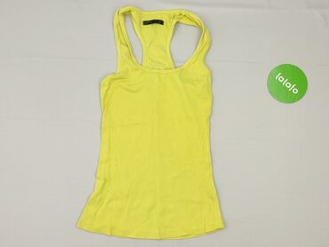 Top damski na ramiączkach, żółty. - Fason: dopasowany top z elastycznej, marszczonej tkaniny (efekt „crinkle/szmizjerka”) - Dekolt: z przodu i z tyłu ozdobne kółko łączące szerokie ramiączka -...