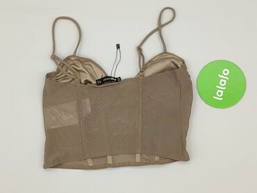 - Krój: krótki top/bustier z usztywnianymi miskami i pionowymi przeszyciami modelującymi sylwetkę