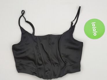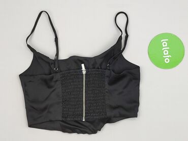 Czarny top/bustier SHEIN dla kobiety - Rozmiar: XS (EU 34, US 2) - Fason: krótki top typu bustier z wydłużonym, szpiczastym dołem - Ramiączka: cienkie, plecione, regulowane - Materiał: elastyczna ...