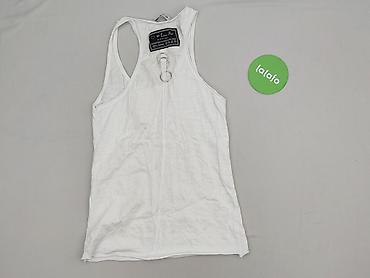 Biały, prążkowany top bez rękawów – damski - Fason: dopasowany, na szerokich ramiączkach, okrągły dekolt - Materiał: elastyczna, miękka dzianina prążkowana (komfortowa, dobrze dopasowuje się do sy...