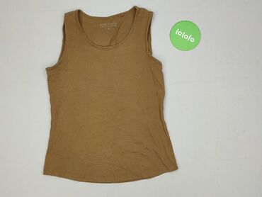 Damski top bez rękawów, rozmiar M - Krój: bez rękawów, okrągły dekolt - Materiał: 100% bawełna (miękka, przewiewna dzianina) - Kolor bazowy: jasny beż/ecru z subtelnym, białym, all-over wzorem - O...