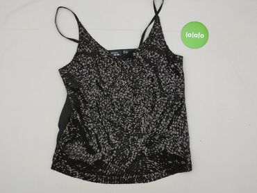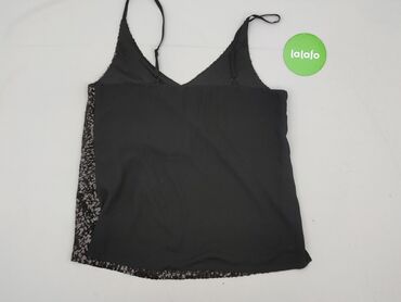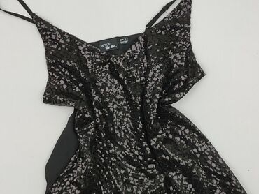 Czarna bluzka damska bez rękawów z cekinami, rozmiar S/M - Fason: dopasowany top bez ramiączek/rękawów, z szerokim elastycznym ściągaczem u dołu - Przód i boki pokryte gęstymi cekinami (małe okrąg...