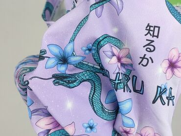- Wzór: lawendowe tło z grafiką węży, kwiatów oraz napisami „SHIRU KA” i znakami japońskimi