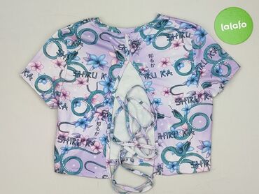 Bluzka crop top RB Sister – rozmiar M - Krój: krótki, dopasowany dzięki szerokiemu pasowi z marszczeniem (smock) w talii - Dekolt: głęboki, z krótką wiązaną tasiemką pośrodku - Rękawy: krótkie, le...