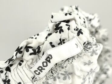 Bez rękawówBiały top damski marki Crop, charakteryzujący się czarnym kwiatowym wzorem. Top posiada odsłonięte ramiona, co nadaje mu lekki i przewiewny charakter. Marszczenia na górnej części dodają mu struktury i dopasowania, a także podkreślają letni styl. Idealny na ciepłe dni, pasuje do wielu stylizacji. Wykonany z lekkiego materiału, zapewniającego komfort noszenia.