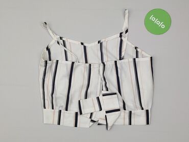 Damska koszulka na ramiączkach - Kolor: biały w czarne, poziome paski - Fason: dopasowany top na szerokich ramiączkach, okrągły dekolt z przodu; z tyłu małe wycięcie-łezka - Detale: czarne koronko...