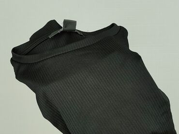 Czarny top typu crop z prążkowanej dzianiny - Krój: dopasowany, bez zapięcia, szerokie ramiączka, zaokrąglony dekolt z przodu i z tyłu - Długość: krótka (crop) – idealny do wysokich spodni i spódn...
