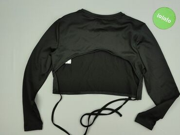 Czarny top crop dla kobiet, bez rękawów, prążkowana dzianina. - Rozmiar: S (na metce) - Krój: dopasowany, długość crop - Dekolt: okrągły - Dół z trokami/sznureczkami do wiązania – możliwość reg...
