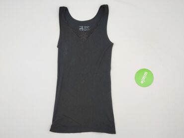 Czarny top damski H&M - Model: koszulka na ramiączkach typu bokserka (racerback) - Marka: H&M - Rozmiar z metki: S (EU S, US S, CA S) - Kolor: czarny - Fason: dopasowany, lekko wydłużony dół - Mat...