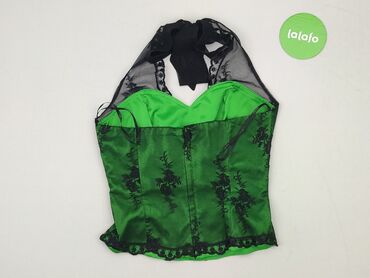 - Krój: gorsetowy top wiązany na szyi (halter), z dekoltem w kształcie serca